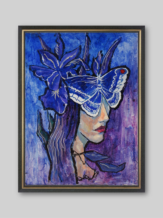 Butterfly Girl - “Acrylic painting” - Female Charm - Painting for Room - 15.7x11.8 Inches - [Nicola0006]