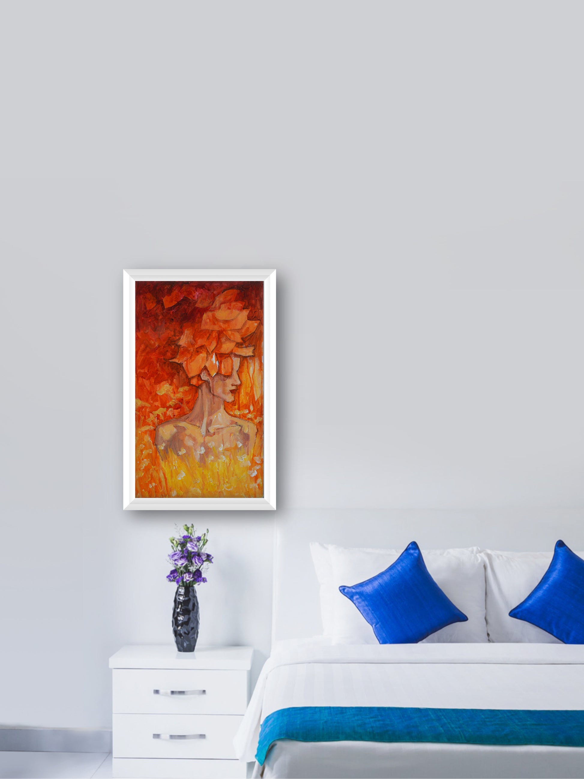 Fire girl - “Acrylic painting” - painting for Room - 19.6x11.8 Inches - [Nicola0009]