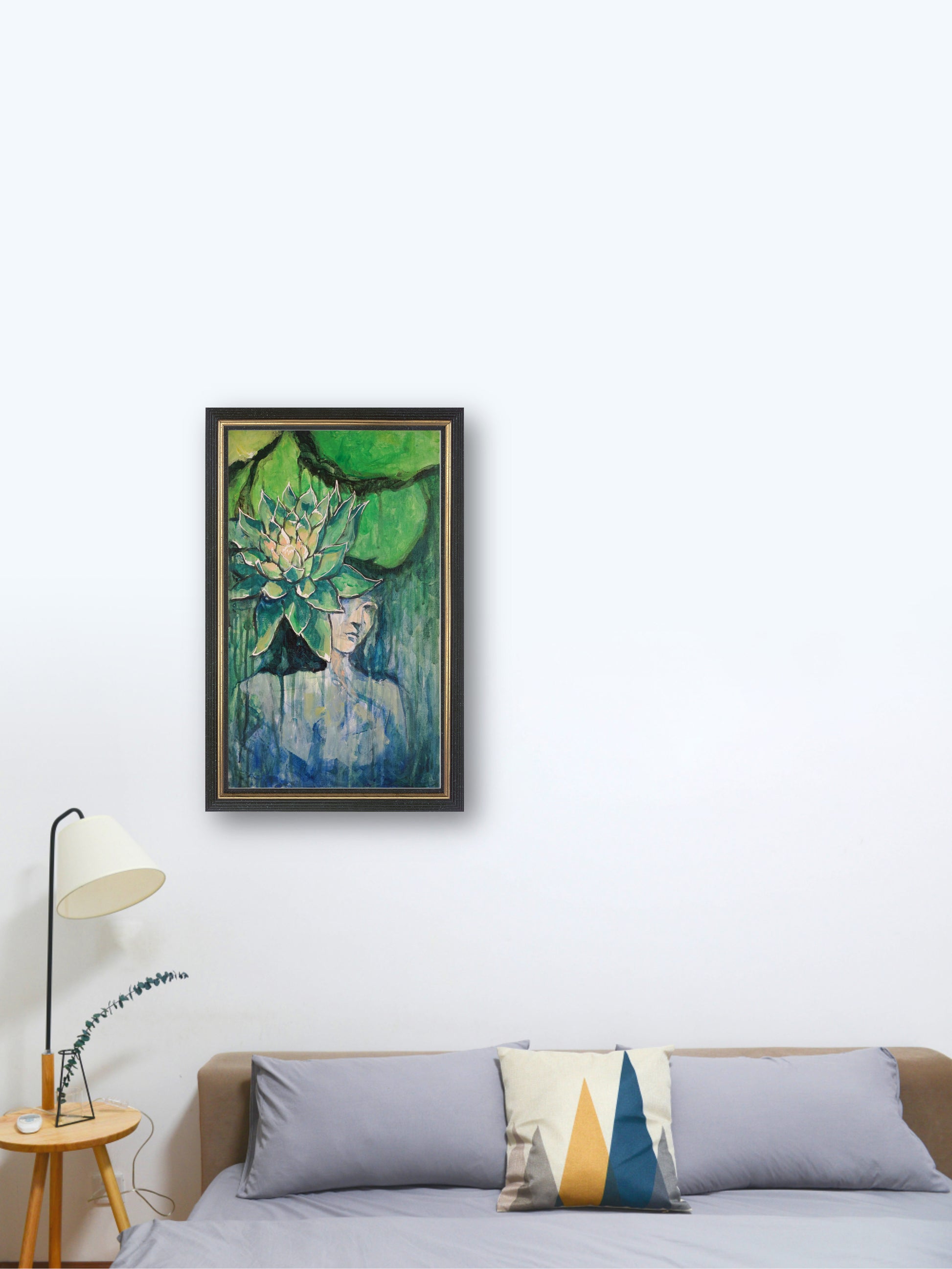 Lotus Girl - “Acrylic painting” - painting for Room - 19.6x11.8 Inches - [Nicola0008]
