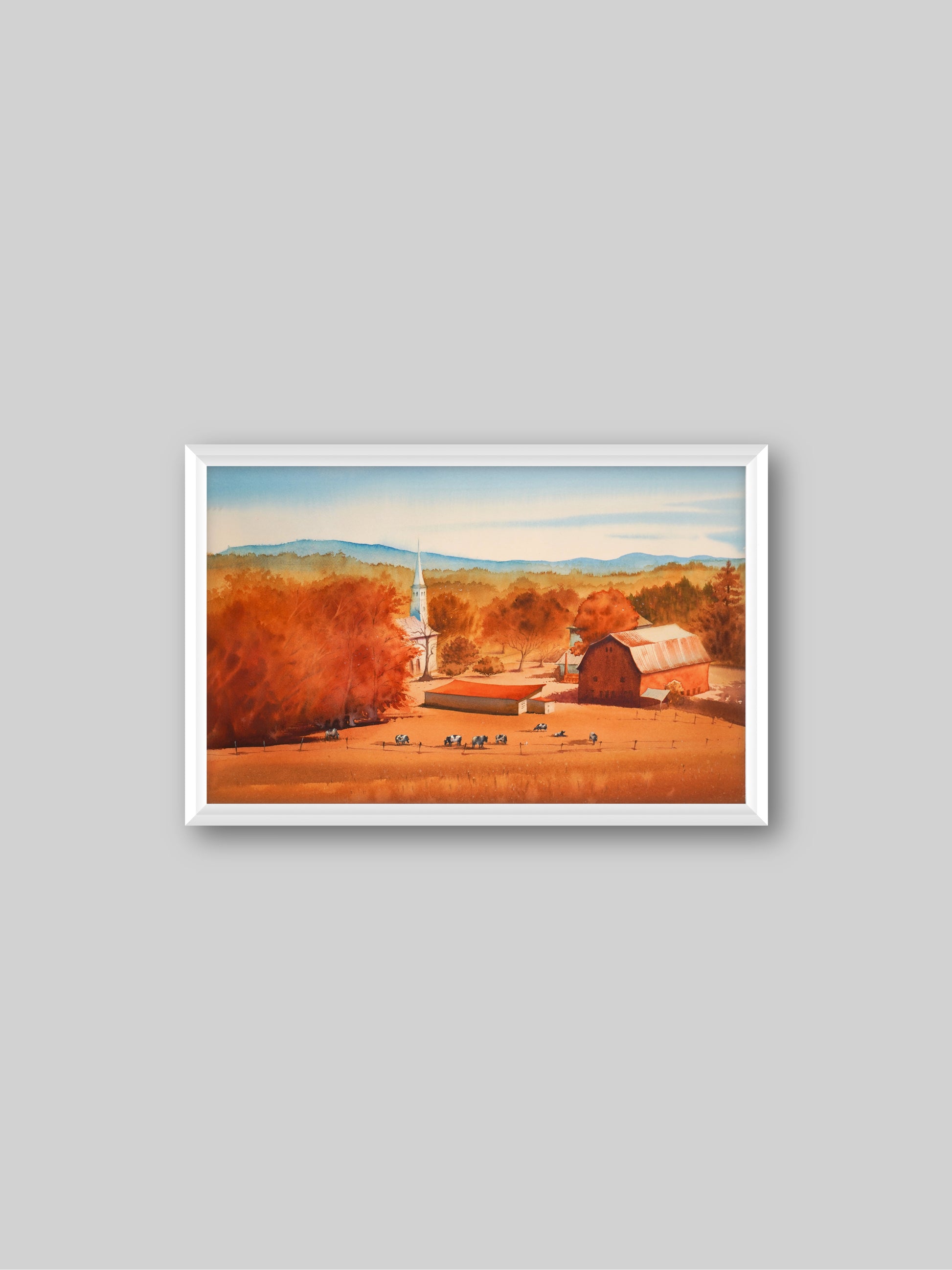 Peacham Farm - "Watercolor Painting" - Painting for Room - 22.4x15 Inches - [Ando0010]